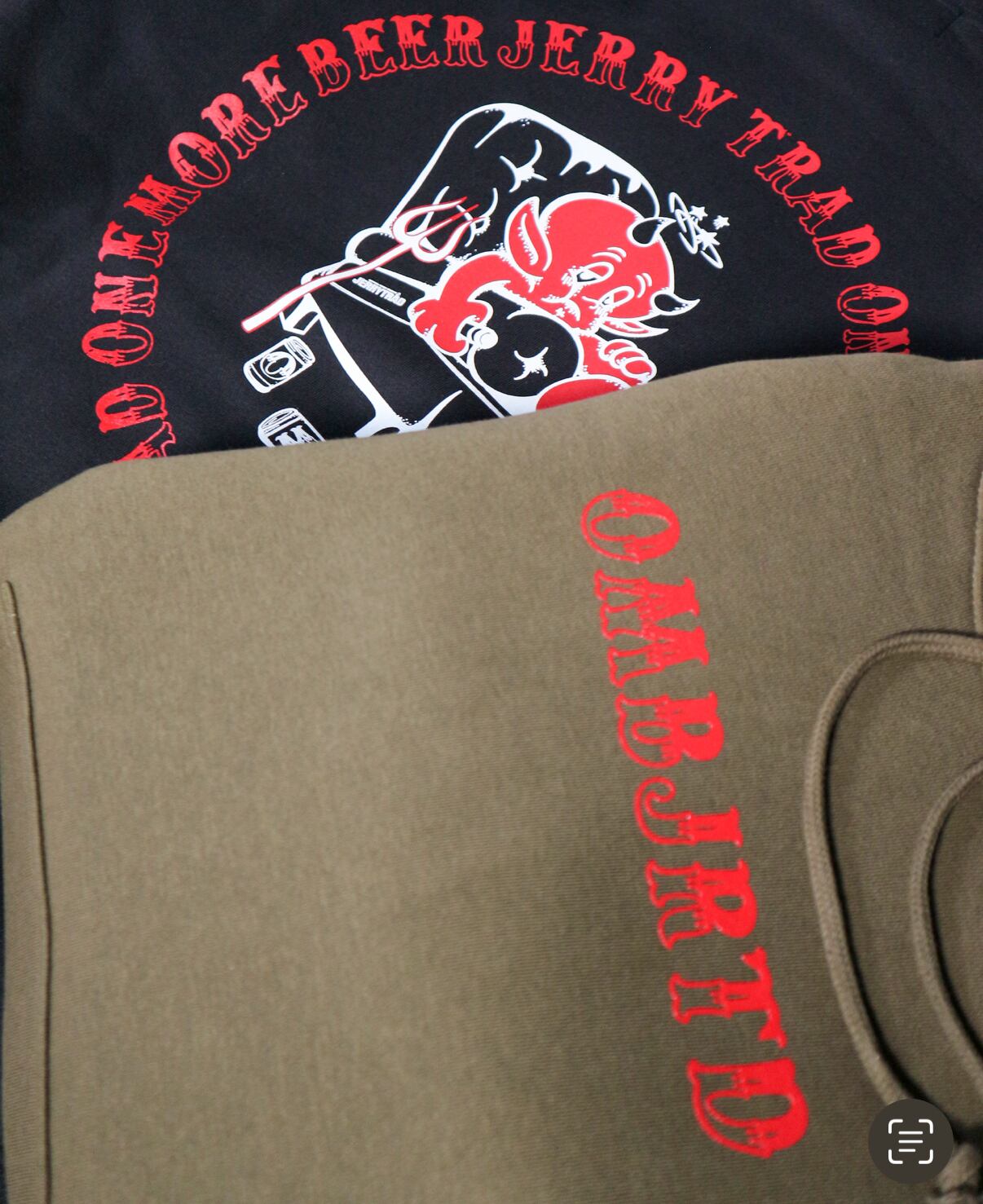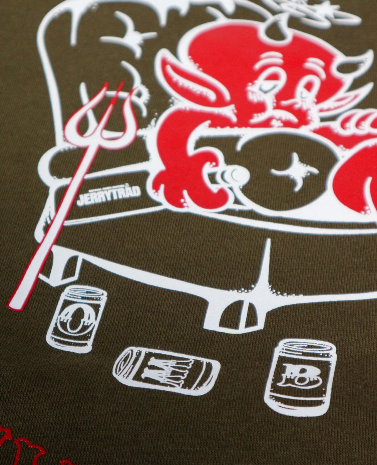 エビデー二日酔いをコンセプトに掲げているビールブランド "ONE MORE BEER "との初のコラボレーションアイテム。フロントには両ブランドの頭文字を配置。バックデザインにはJERRYらしいタッチでベロベロのデビル。