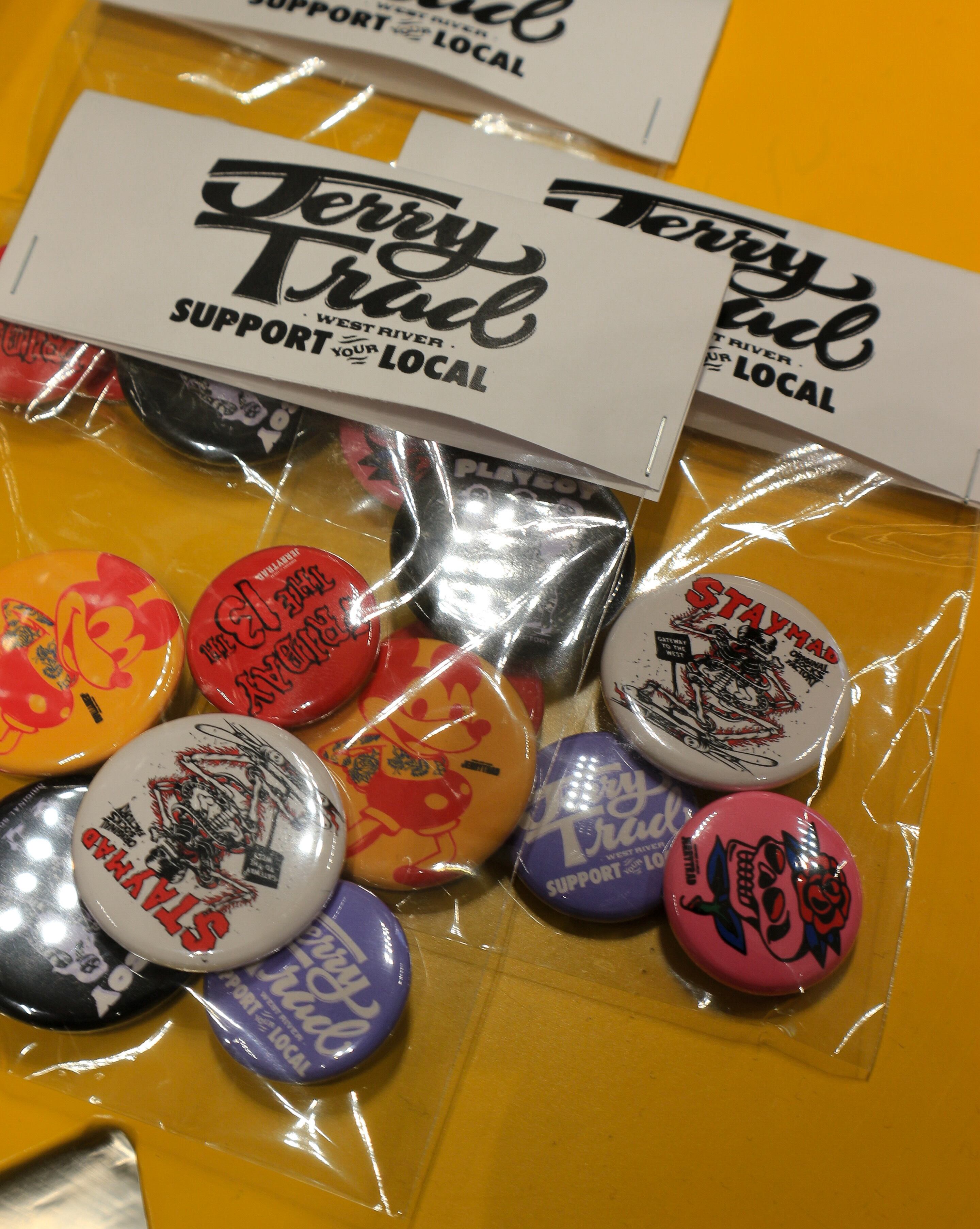 JERRYTRAD 2026 1st TIN BADGE 大小6個入りの缶バッジセット。 25mm 3個 32mm 3個